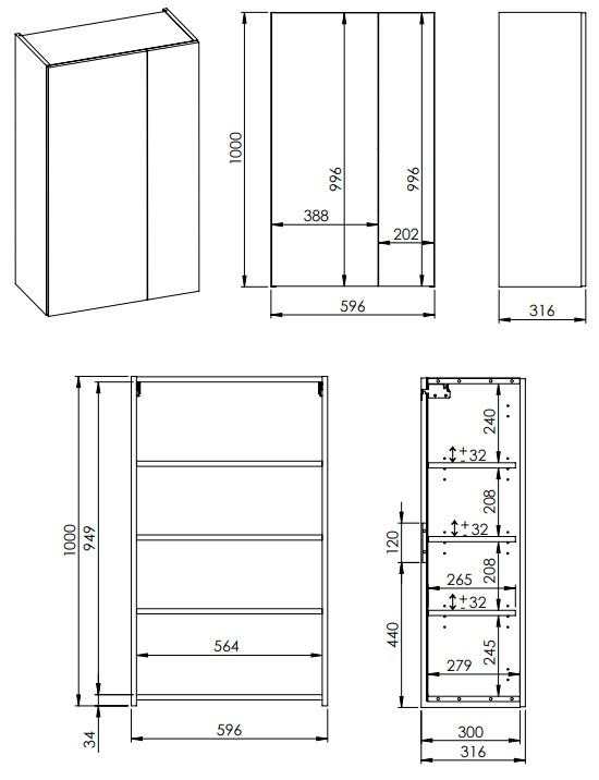 - a szekrény elfordításával változik az ajtó nyitásirányaSzélesség (mm) 596 Magasság (mm) 1000 Mélység (mm) 316 Szín #FFFFFF - Fehér Család UNIVERZÁLIS FELSŐSZEKRÉNYEK Felület Fényes Keresőkifejezések 165569 -