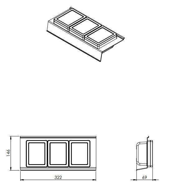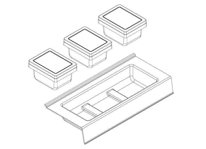 - 4 elemből áll (1 tartó, 3 betét)