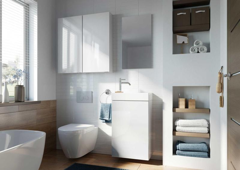 A magasfényű fehér felület világos, tiszta megjelenést kölcsönöz a fürdőszobának, és optikailag tágítja a teret.