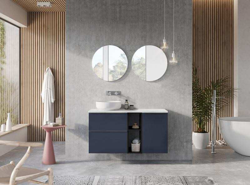 AREZZO design MONTEREY 100 cm-es alsószekrény 2 fiókkal Matt kék színben, szifonkivágással - AR-168576