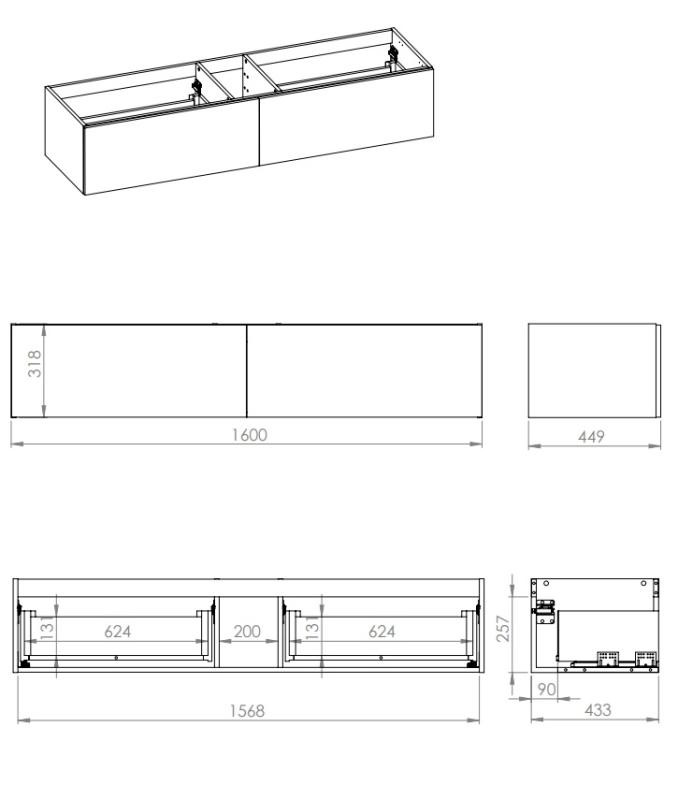 A Skappa süllyesztett mosdókkal nem kompatibilis.Szélesség (mm) 1600 Magasság (mm) 318 Mélység (mm) 449 Szín #000000 - Fekete Soft-Close csillapítórendszer Igen Fiókok száma 2 Fogantyú Külön kapható Család MONTEREY Mosdópult Külön kapható Alapanyag Laminált farostlemez Felület Matt Kivitel Falra szerelhető Garancia (év) 2 Keresőkifejezések 169464 -