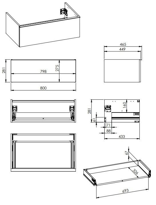 -alsó -mély fiókok oldalsó fémkerettel