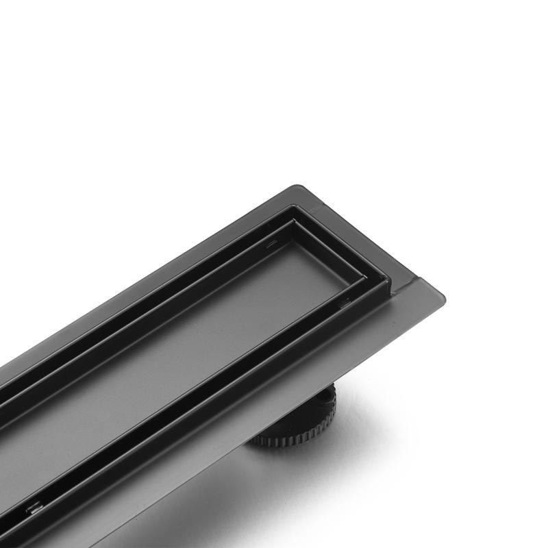 Az AREZZO design 2in1 rozsdamentes acél zuhanyfolyóka modern, minimalista megjelenést és maximális funkcionalitást kínál minden fürdőszobába. A 800 mm-es, matt fekete felületű változat fordítható rácskialakítással rendelkezik, így burkolható oldala is használható – ezáltal teljesen egységes zuhanytér érhető el.