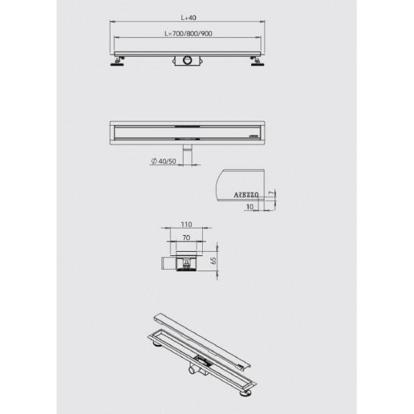 AREZZO design 900 mm-es rozsdamentes acél folyóka Steel ráccsal AR-900 - AR-900