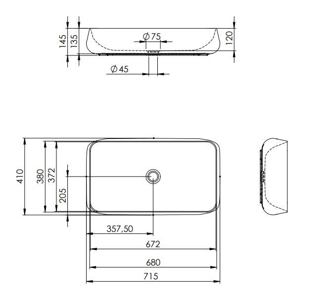 Kerámia mosdótál.Szélesség (mm) 715 Magasság (mm) 145 Mélység (mm) 410 Szín #FFFFFF - Fehér Alapanyag Porcelán Felület Fényes Kivitel Pultra ültethető Túlfolyó Nem Csaplyuk Nem Belső mélység 120 Keresőkifejezések 145029 Letöltések