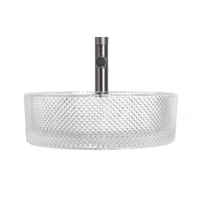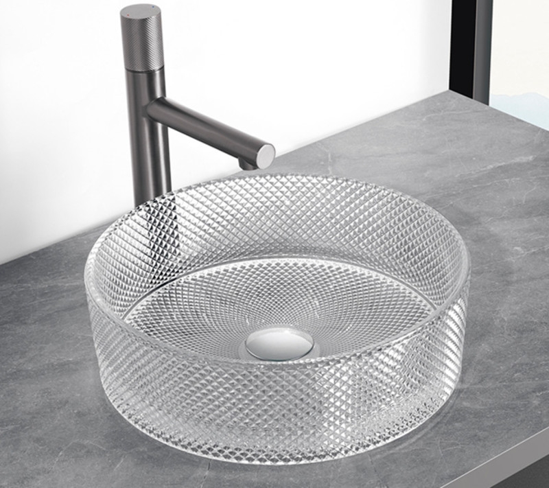 Egy üvegmosdó könnyedséget és a tisztaságot kínál a fürdőszobában.