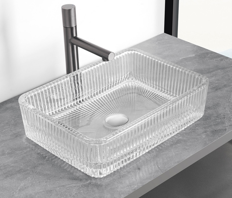 Egy üvegmosdó könnyedséget és a tisztaságot kínál a fürdőszobában.