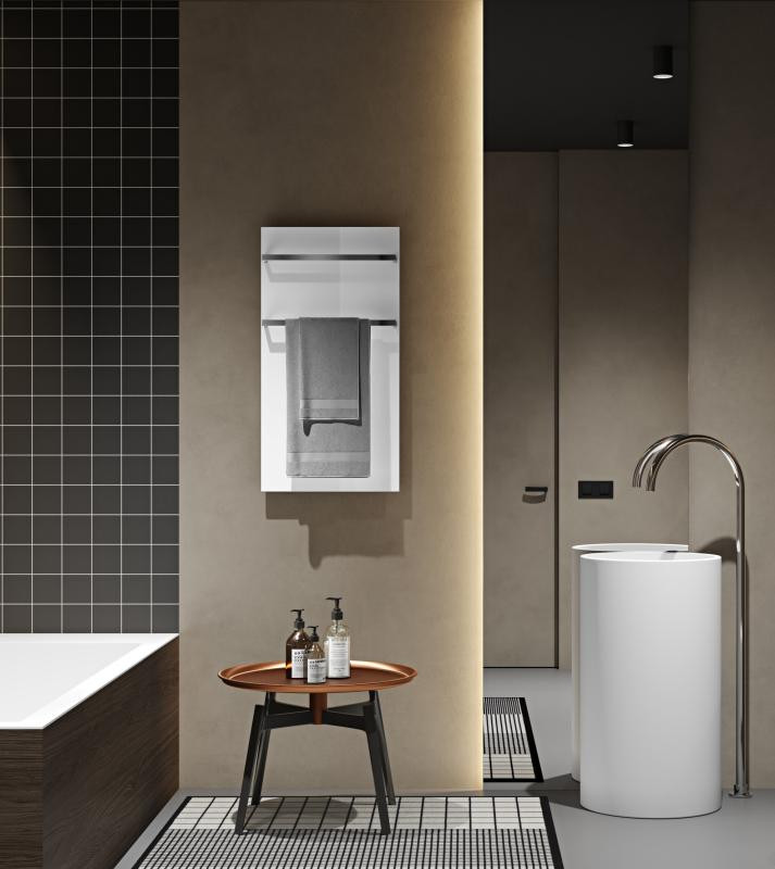 Az AREZZO design ONYX elektromos radiátorokat fényes fekete és fehér színben, két méretben érhető el. Edzett üvegből készült. A fűtőelem egyenletesen helyezkedik el az üveg és a test között.Az erős ONYX tartóknak köszönhető, hogy akár több nehéz törölköző súlyát is elbírják, megbízható működést biztosítva.