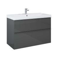 AREZZO design MONTEREY 100 cm-es alsószekrény 2 fiókkal Mf. antracit színben, szifonkivágással - AR-167086