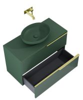 AREZZO design MONTEREY GLASS 100 cm-es alsószekrény, 2 fiókkal, matt zöld - AR-169085