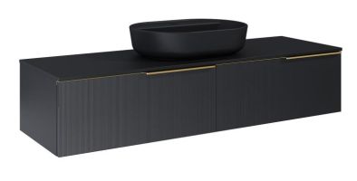 AREZZO design MONTEREY GLASS 160 cm-es alsószekrény 2 fiókkal, fekete színben - AR-169481