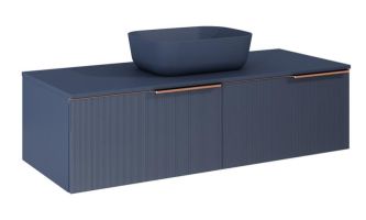 AREZZO design MONTEREY GLASS 100 cm-es alsószekrény, 2 fiókkal, matt kék - AR-169086