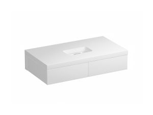 A mosdó alatti szekrény helyet kínál nem csak a mosdó körül, hanem alatta is. A fiókokban lehet tárolni mindent, amit nem szeretnénk szem előtt tartani. A magas szekrényben elfér bármi, amire a fürdőszobában szükség van. A tükör további helyet biztosít az üvegpolcon.