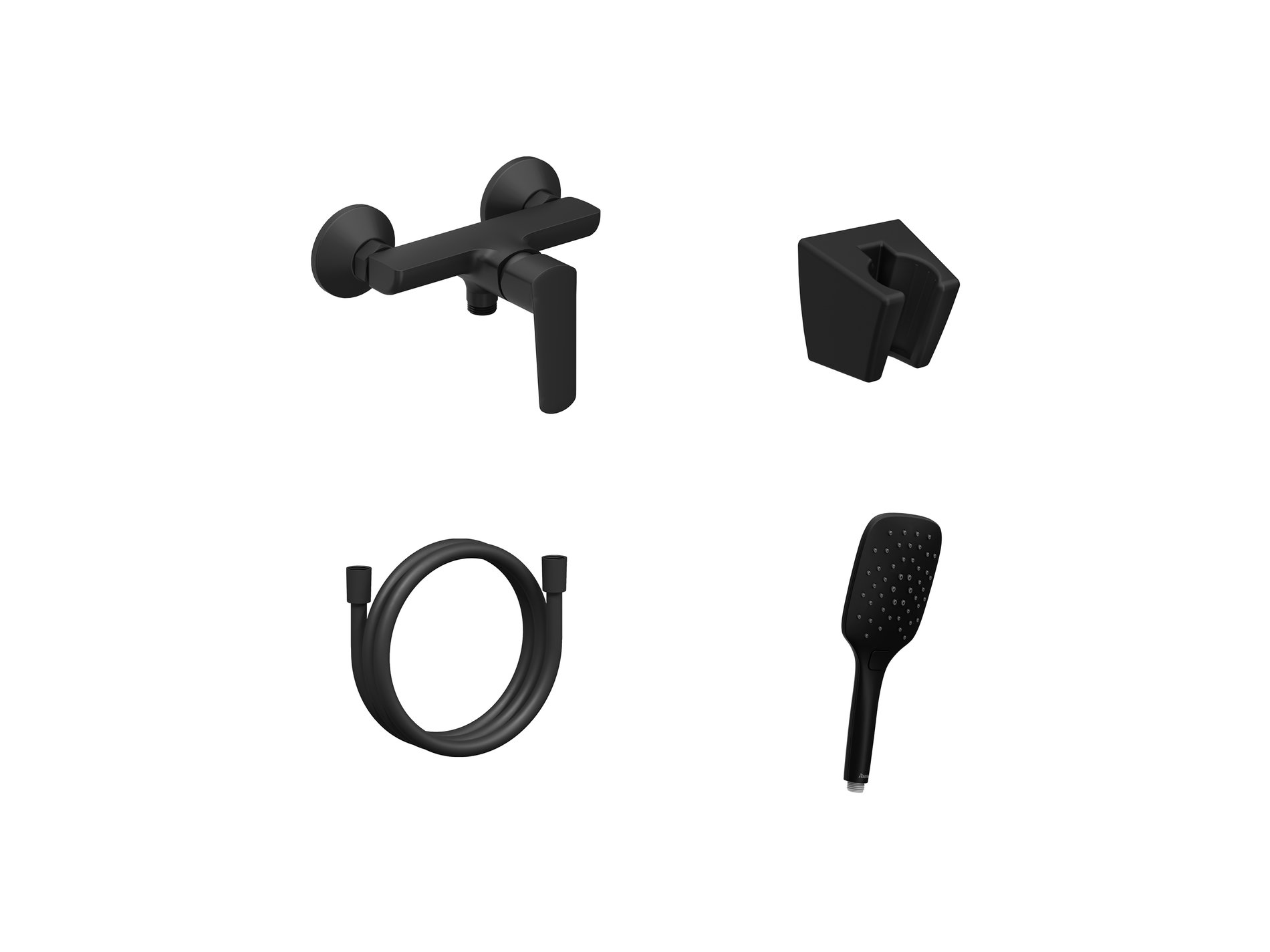 Life falra szerelhető zuhanycsaptelep zuhanyszettel. Matt fekete kivitelben.