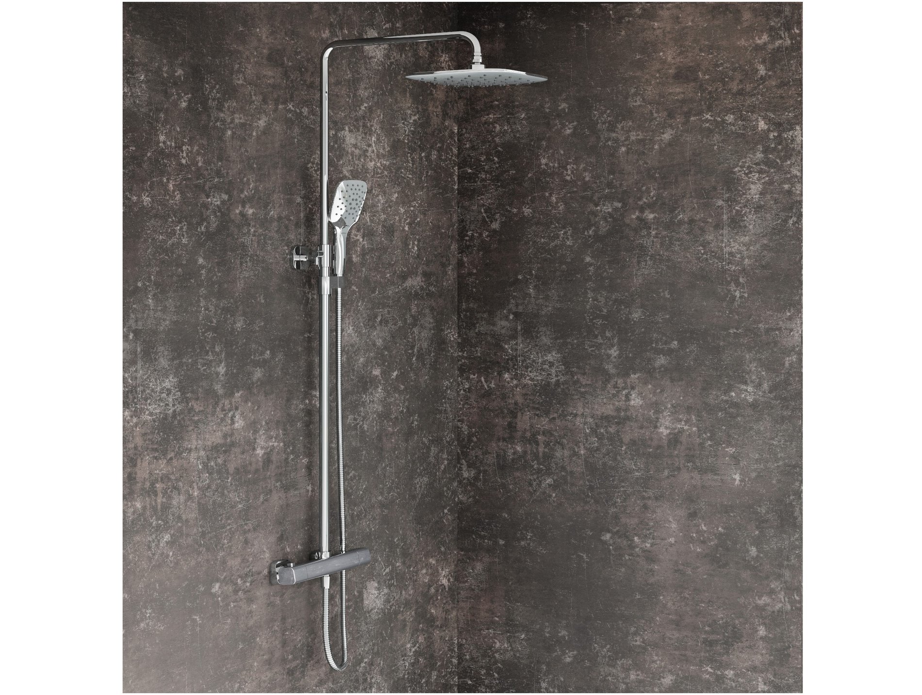 10° Free termosztatikus, csúszó zuhanyoszlop zuhanykészlettel. Króm fényes kivitelben.