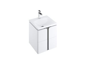 A szekrény belső tere grafit színű. Két praktikus, lassan bezáródó fiók elegendő tárolóhelyet kínál. A Balance 50 beépített mosdóhoz tervezték túlfolyó nélkül, fix lefolyójú mosdószifonnal kiegészítve. A szekrényt kiegészítheti a Balance 120 fehér lappal, a Balance/Comfort 120 lap konzollal, a Balance fehér törölközőtartóval és a laphoz való mosdóval (pl. Uni / Uni Slim sorozat). Szerelt állapotban szállítjuk, szerelési készlettel (csavarok, zsanérok, dugók). A szekrényt a falra szerelik.