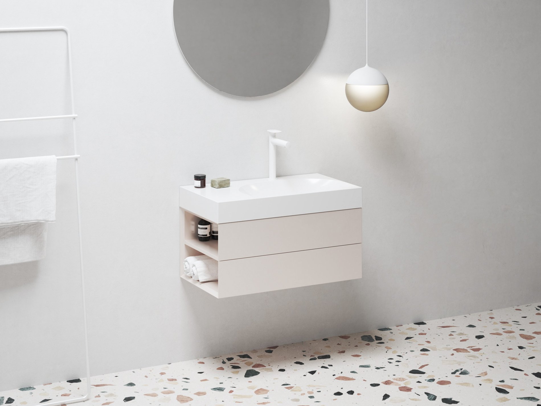 SD Lite mosdószekrény Alabaster Pink kivitelben. Bal változat.