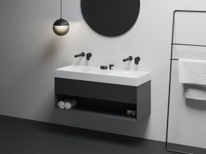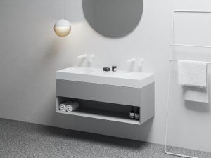 „Az öntött márvány precíz élek és tökéletesen sík felületek modellezésére ösztönzött, vagyis olyan részletekre, amelyek más anyagokkal nem érhetők el“ - mondja Roman Vrtiška a szerzőpáros nevében. Az eredmény a téglalap alakú vonalak vonzó keveréke magának a mosdófelületnek a szerves belső formájával. „Mintha egy óriási hüvelykujj rányomta volna magát a mosdó lapos felületére, lágy formájú nyomot hagyva egy négyzetben vagy téglalapban“ – magyarázza Vladimír Žák társszerző.