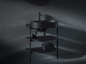 A Yard mosdónak nincs szüksége bútorra, acél konzollal közvetlenül a falra szerelhető. A konzol harmonizál a mosdó formájával és vizuálisan támogatja.
