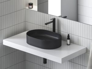 Vékony falú kerámia mosdó Ceramic Slim, asztalra vagy szekrényre szerelhető, túlfolyó nélkül. Antracit kivitelben.