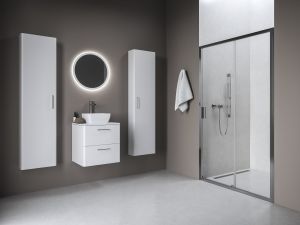 A tolóajtós zuhanykabin kisebb fürdőszobákba is alkalmas. Nem foglal el plusz centimétert, még akkor sem, ha kinyitja.
