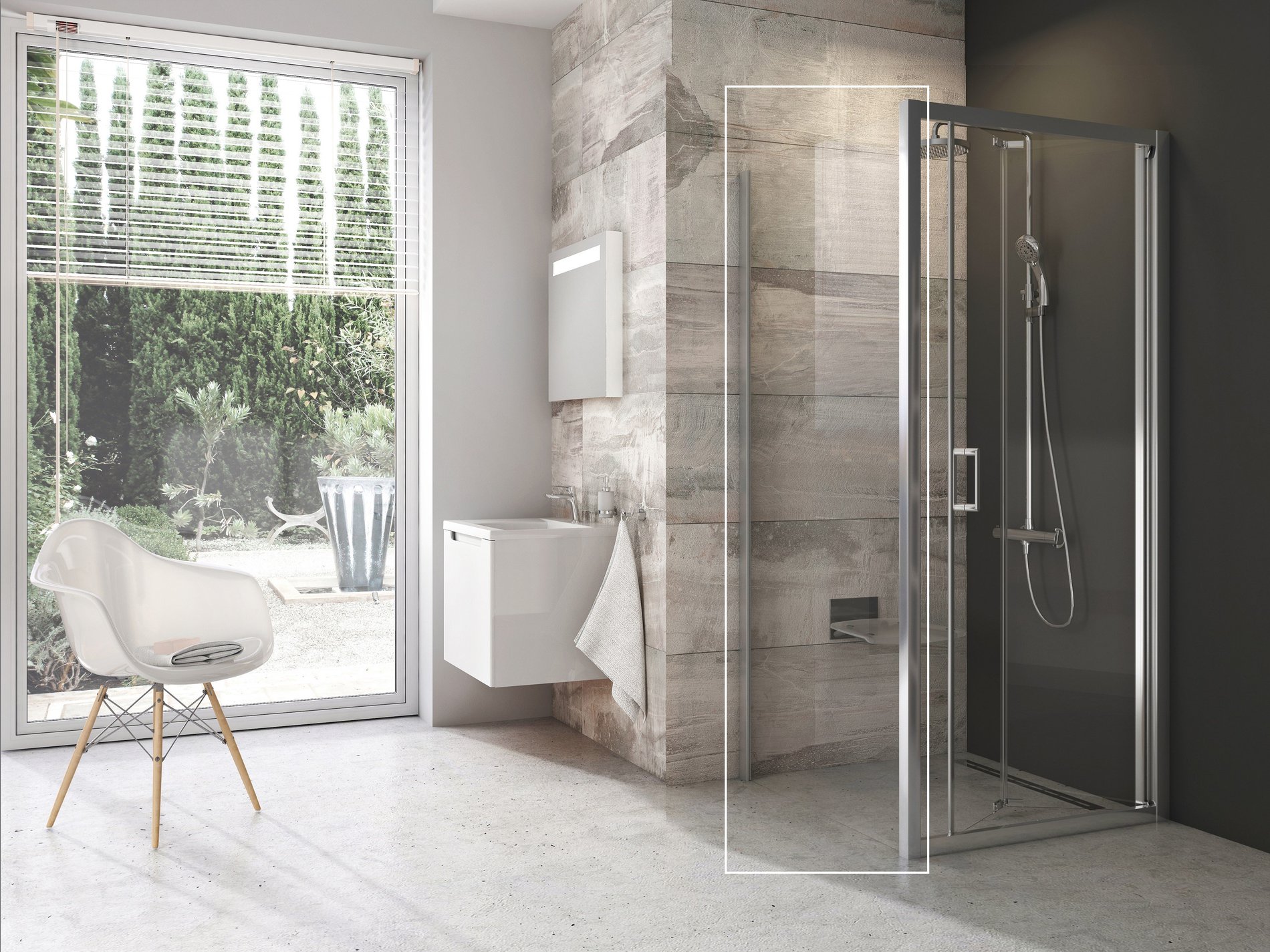 A tolóajtós zuhanykabin kisebb fürdőszobákba is alkalmas. Nem foglal el plusz centimétert, még akkor sem, ha kinyitja.