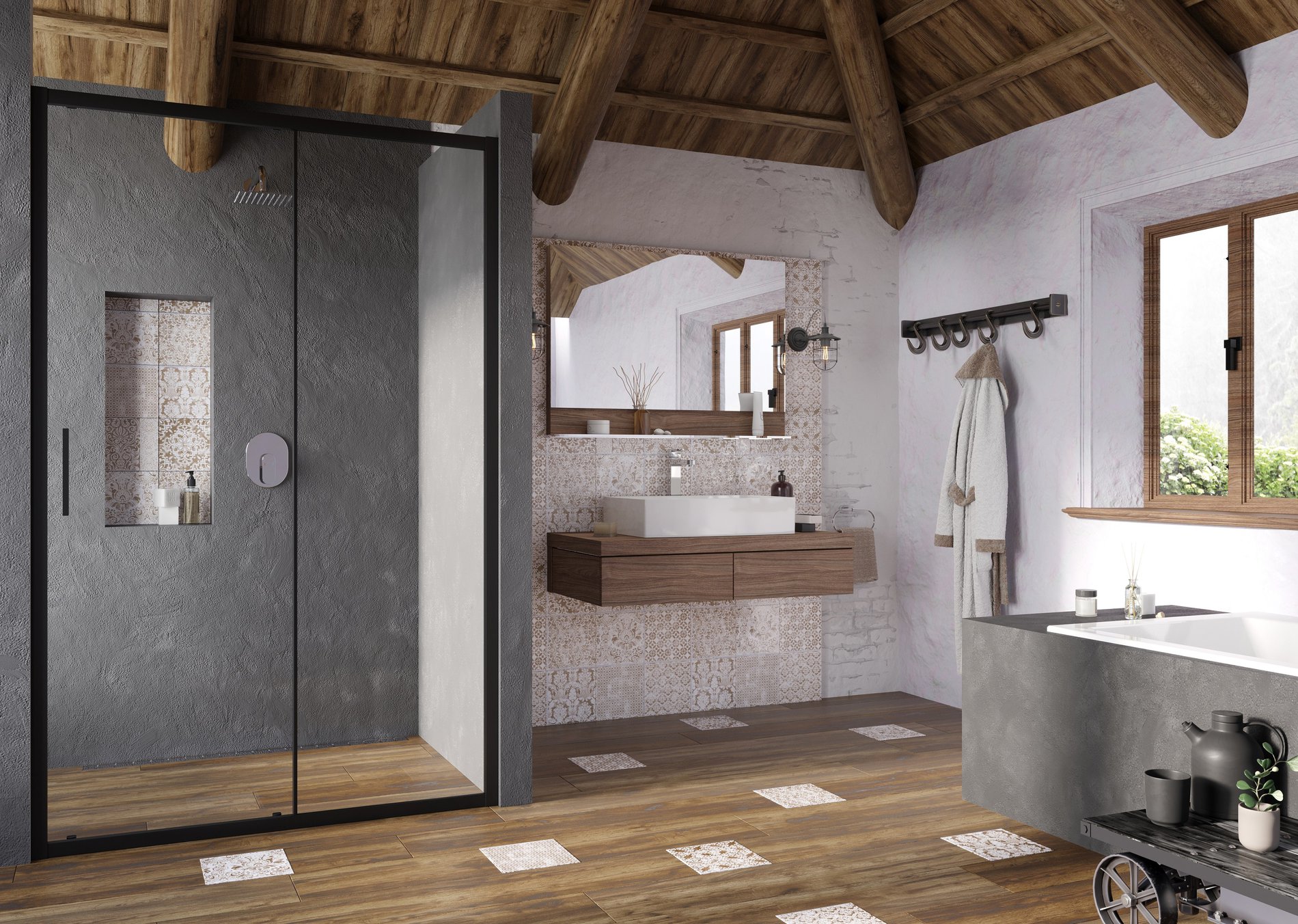 A tolóajtós zuhanykabin kisebb fürdőszobákba is alkalmas. Nem foglal el plusz centimétert, még akkor sem, ha kinyitja.